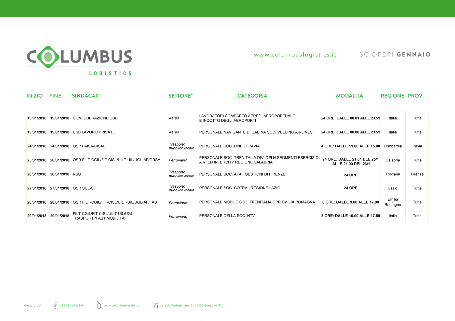 Scarica il PDF calendario scioperi dei trasporti gennaio 2018