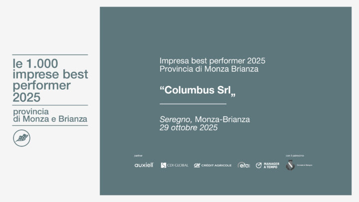 Siamo orgogliosi di comunicare che Columbus srl è stata selezionata tra le “1.000 Imprese Best Performer” della provincia di Monza e Brianza, nella ricerca promossa da ItalyPost in collaborazione con L’Economia del Corriere della Sera. L’indagine analizza le performance economico-finanziarie delle imprese italiane per individuare quelle che si distinguono per solidità, capacità di crescita e creazione di valore nel proprio territorio. Per noi si tratta di un … Continued